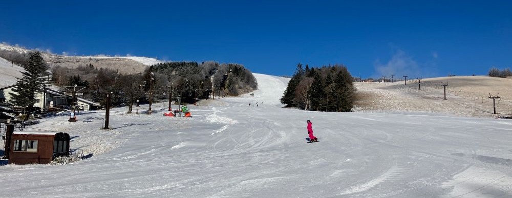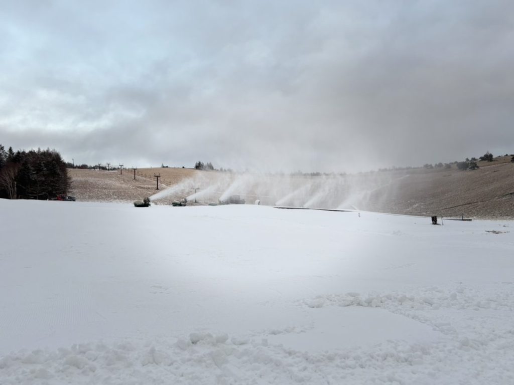 12月13日のオープンから数日が経ち、現在、ゲレンデには順調に雪が積もり、山肌が白く染まり始めた「雪化粧の車山」が美しい姿を見せてくれています!一部コースではお客様が滑走する姿も見られます。